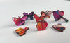 Las piezas son de madera y cortadas con láser en formas e imágenes únicas. Las piezas son interesantes y divertidas, incluso antes de empezar a armar el rompecabezas. El rompecabezas en sí es vibrante y resistente.