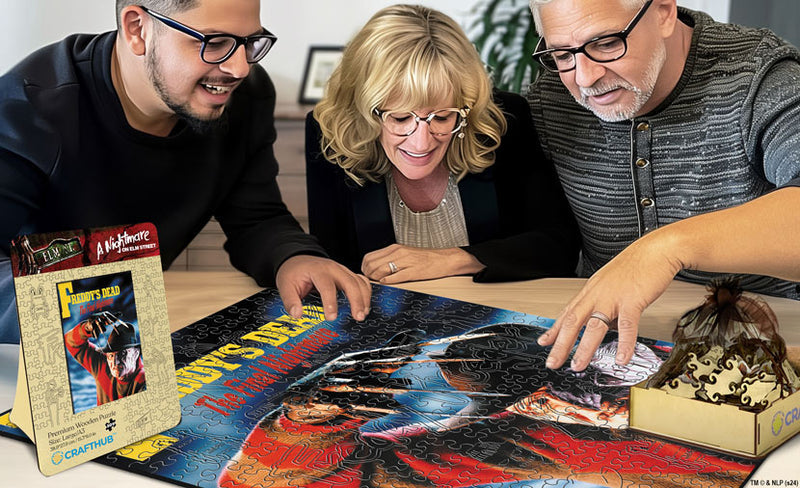 Con cada pieza, irás revelando poco a poco las inquietantes calles de Springwood, el guante afilado de Freddy Krueger y las aterradoras escenas que difuminan la línea entre los sueños y la realidad en Elm Street.
