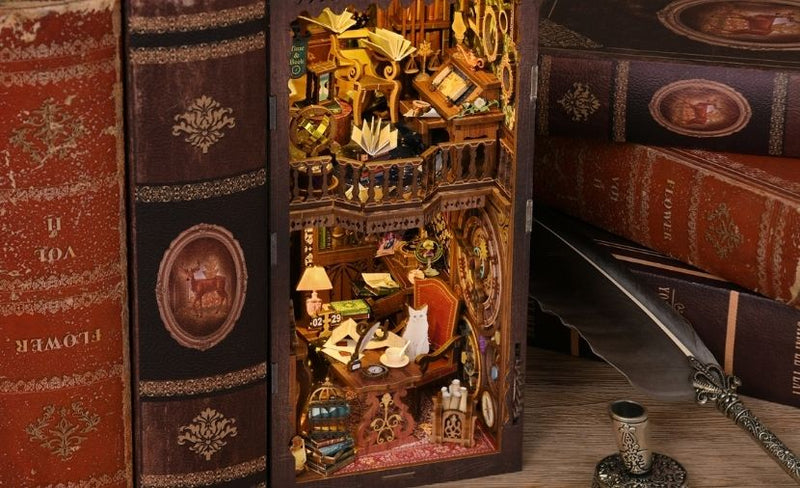 ¡Este book nook superó mis expectativas! El diseño es ingenioso y la pieza terminada parece un mini escenario. Sin duda se convierte en tema de conversación cada vez que alguien ve mi estantería.