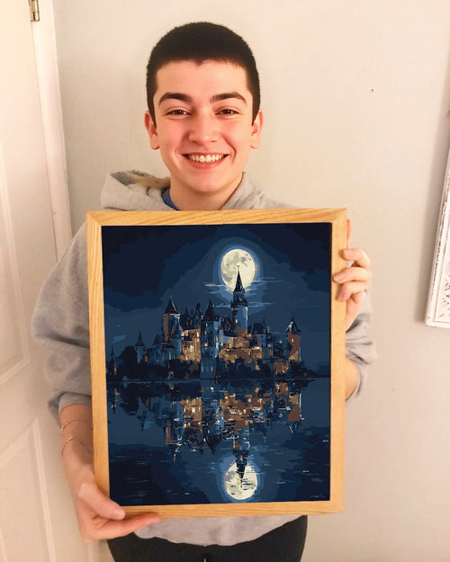 Todo lo que necesitas está incluido: lienzo para pintar, juegos de pinturas a base de acrílico, 4 pinceles, hoja de referencia y guía.