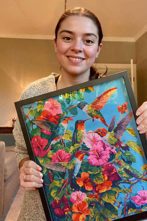 Cada kit incluye un juego de pinturas acrílicas intensas y de alta calidad, que ofrecen colores vibrantes que no se desvanecen con el tiempo, creando una obra maestra duradera.