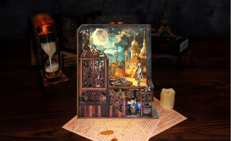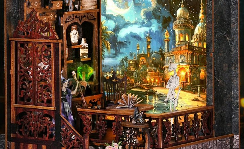 Diseñado como un libro decorativo, Magic Exploration se abre para revelar una calle caprichosa llena de encanto fantástico, perfecta para exhibir en tu estantería.