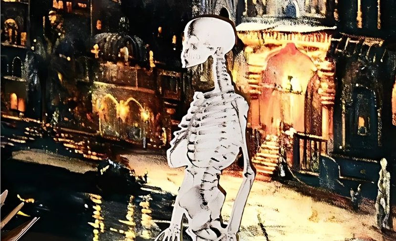 Desde brujas y esqueletos hasta pociones brillantes y tiendas encantadas, cada detalle de la miniatura te sumerge en una aventura mágica.