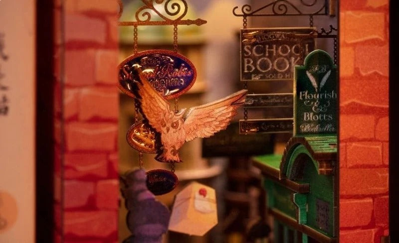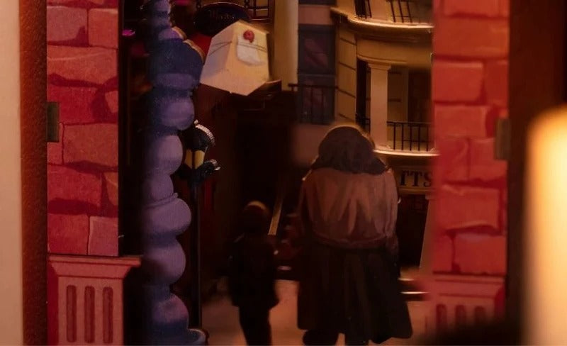 Este book nook de Diagon Alley está lleno de encanto y detalles. Realmente captura la sensación de entrar en las tiendas mágicas del mundo de Harry Potter. Una pieza imprescindible para los fanáticos de la serie.