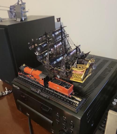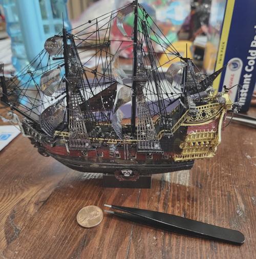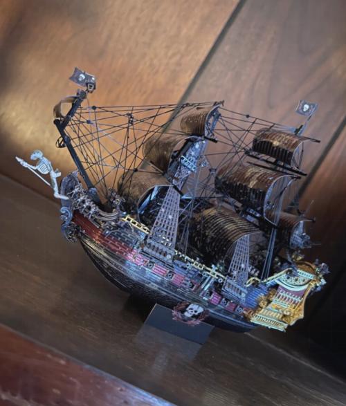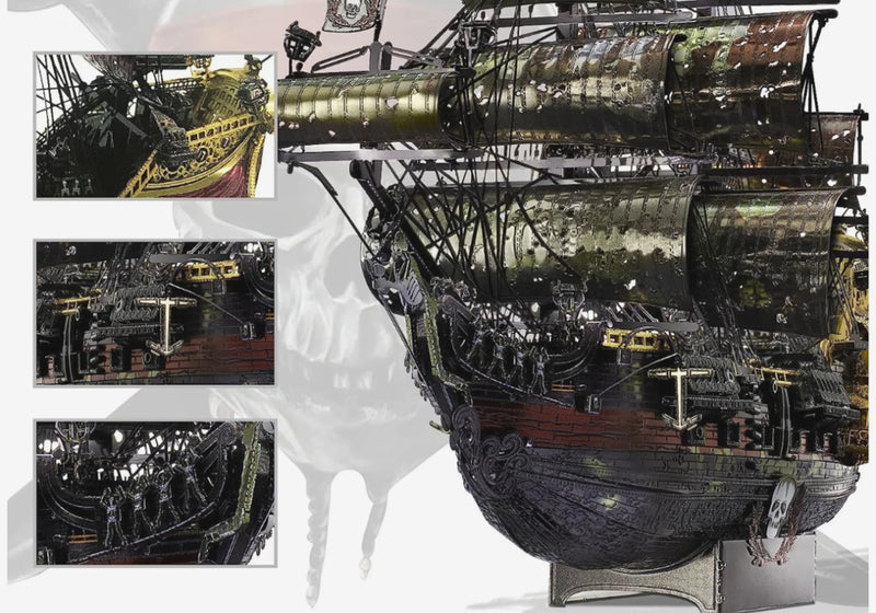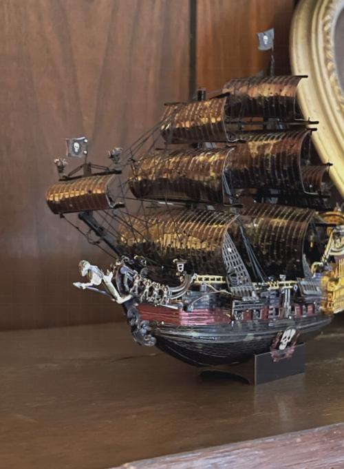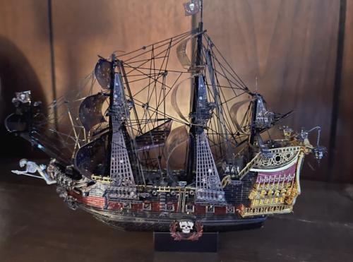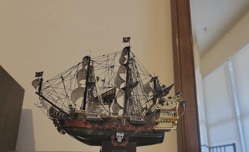 Muestra el majestuoso e impactante diseño del barco, que recuerda a la verdadera criatura marina que una vez surcó los Siete Mares. La complejidad de la maqueta refleja la reputación de belleza y terror del barco, proporcionando un testimonio tangible de su impresionante historia.