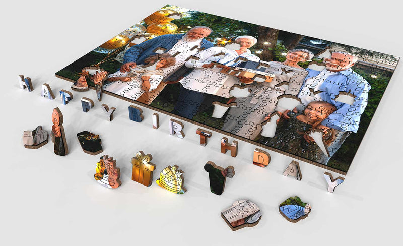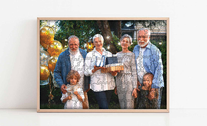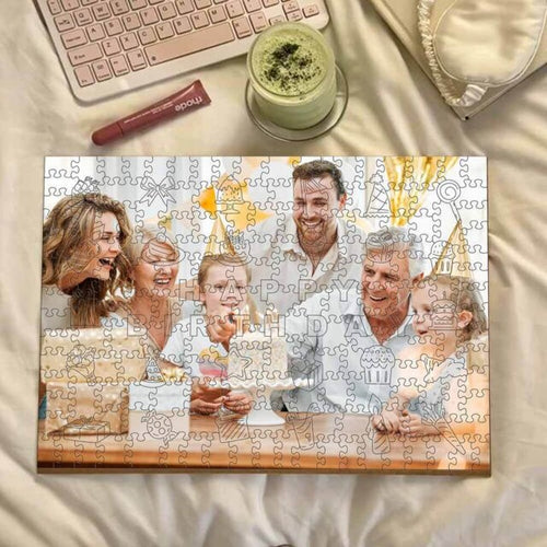 Una forma conmovedora de recordar un cumpleaños especial. La foto personalizada hizo que destacara, y las piezas con formas divertidas añadieron un toque alegre.